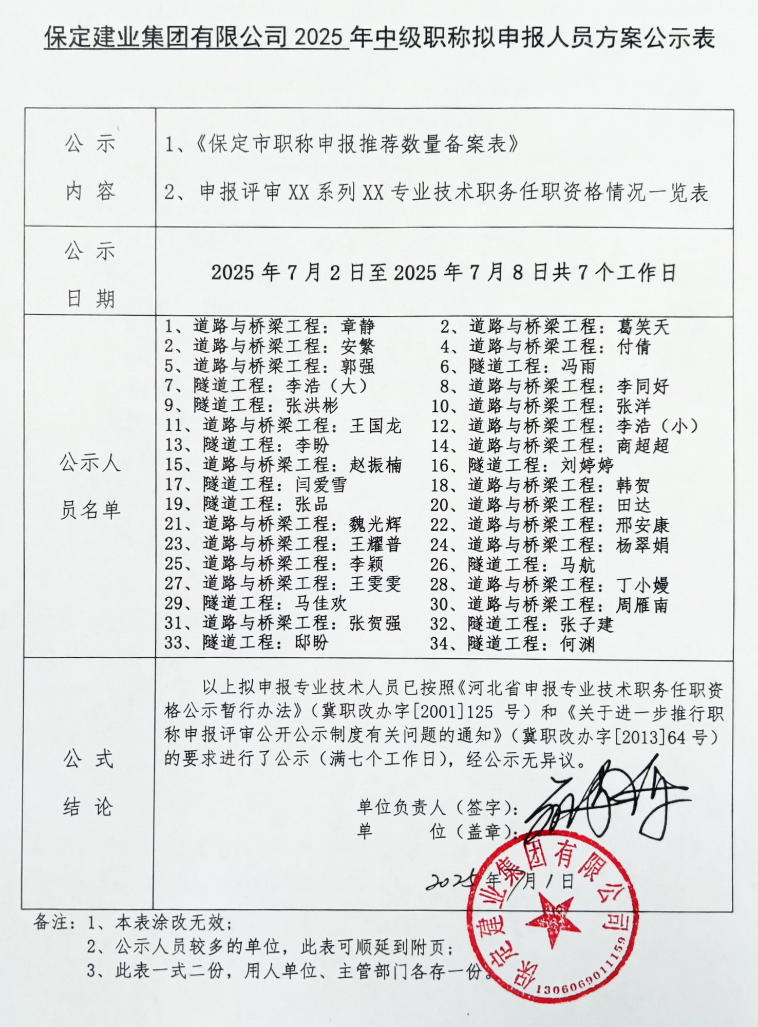 保定建業集團2025年中級職稱擬申報人員公示二